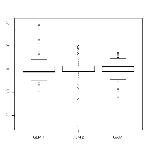 names=c("GLM 1","GLM 2","GAM"))