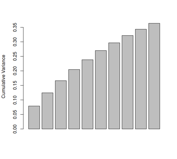 barplot(cumsum(var/pca$totdev)[1:dim],ylab="Cumulative Variance")